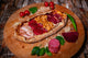 Mergi la magazinblat, sos pizza, mozzarela, piept de pui aromatizat, rosii cherry, ardei iute