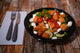 Mergi la magazinsalata verde, rosii cherry, castraveti, ceapa, masline, branza, piept de pui, dressing