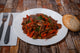 Mergi la magazincarne de pui sau porc, ciuperci, sos rosu, mamaliga